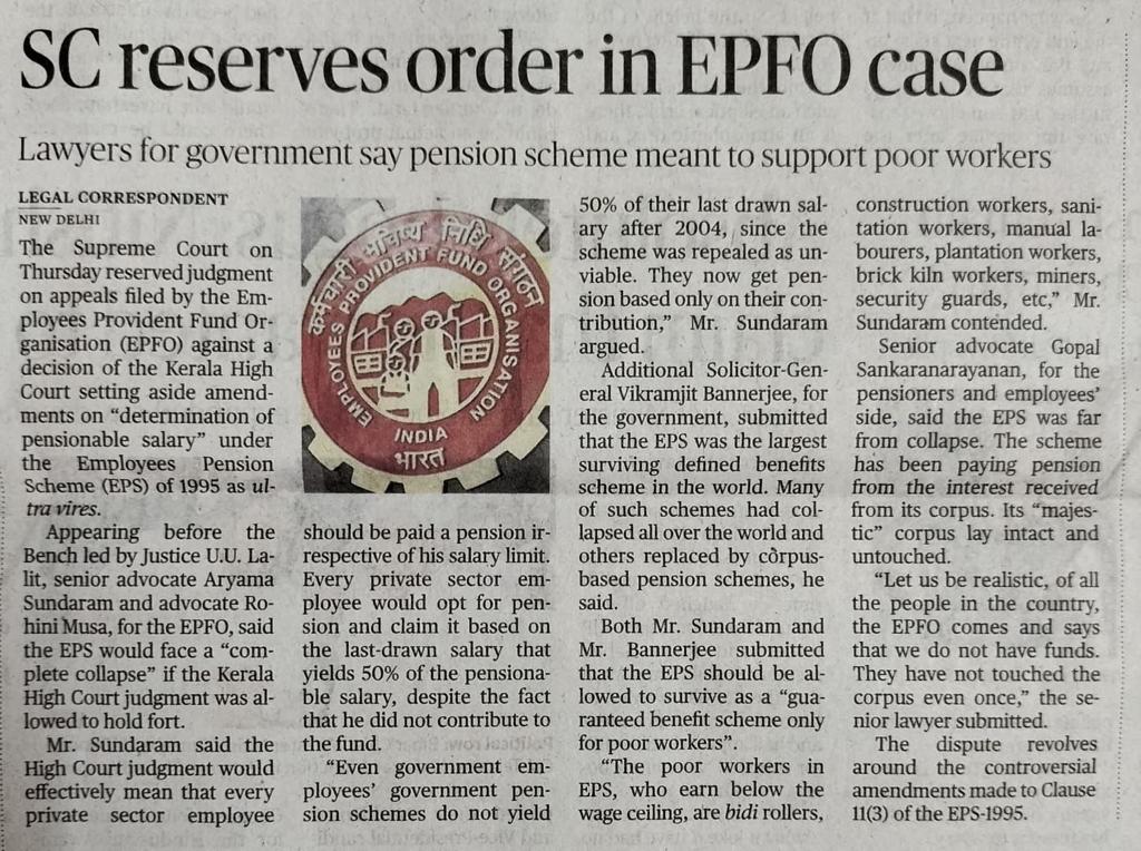 Arguments in supreme court completed on 11-08-222 and judgment reserved . Five year long struggle has come to end. Let us hope for the best. NCOA/NCR made all possible efforts to seek justice to the retired and working employees of CPSEs by putting best advocates of the country to win this case. All relevant informations were provided to the advocates by Mr Praveen Kohili. We are thankful to him and thousands of officers/employees who contributed in this struggle through various means.